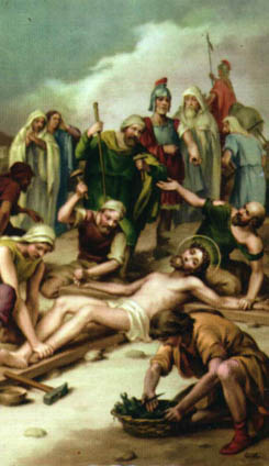 Junto a los martillazos que enclavan a Jesús, resuenan las palabras proféticas de la Escritura Santa: han taladrado mis manos y mis pies. Puedo contar todos mis huesos, y ellos me miran y contemplan (Ps XXI,17-18).