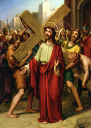 Jesús se entrega inerme a la ejecución de la condena. No se le ha de ahorrar nada, y cae sobre sus hombros el peso de la cruz infamante. Pero la Cruz será, por obra de amor, el trono de su realeza.